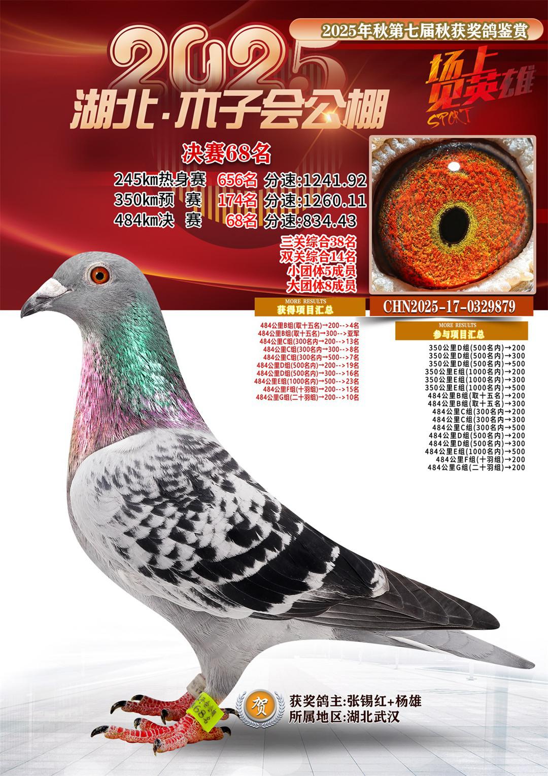湖北省木子会公棚2025决赛68名张锡红+杨雄17-0329879湖北武汉获奖鸽展示!