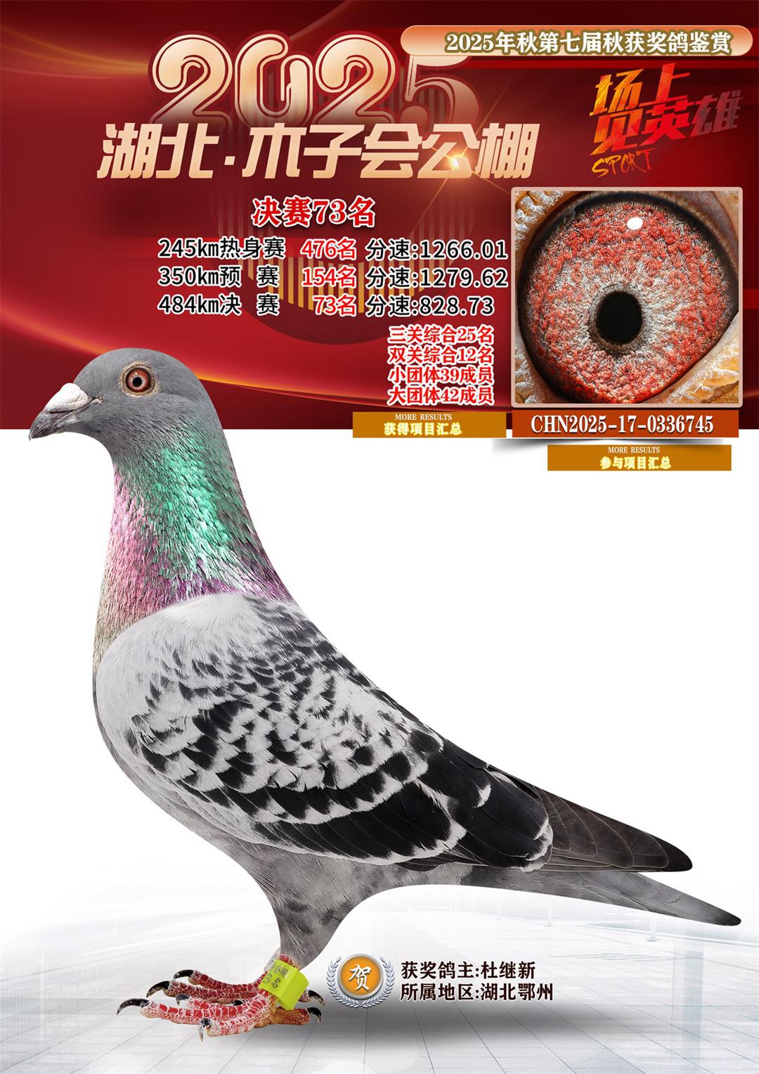 湖北省木子会公棚2025决赛73名杜继新17-0336745湖北鄂州获奖鸽展示!