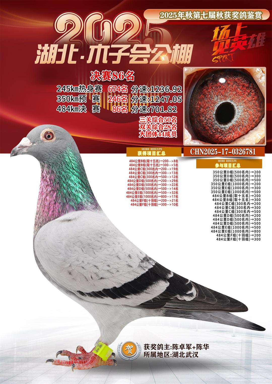 湖北省木子会公棚2025决赛86名陈卓军+陈华17-0326781湖北武汉获奖鸽展示!