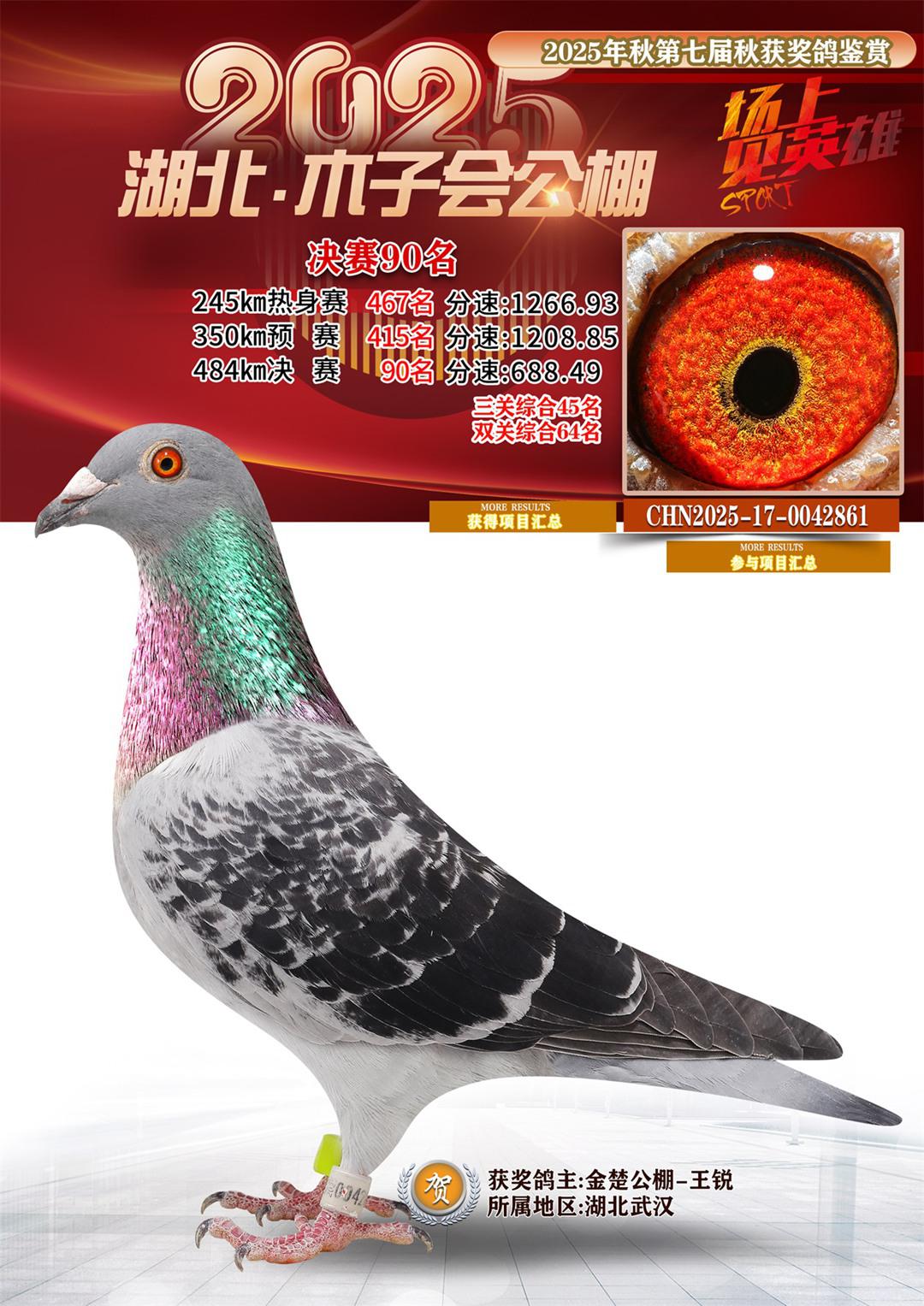 湖北省木子会公棚2025决赛90名金楚公棚-王锐17-0042861湖北武汉获奖鸽展示!