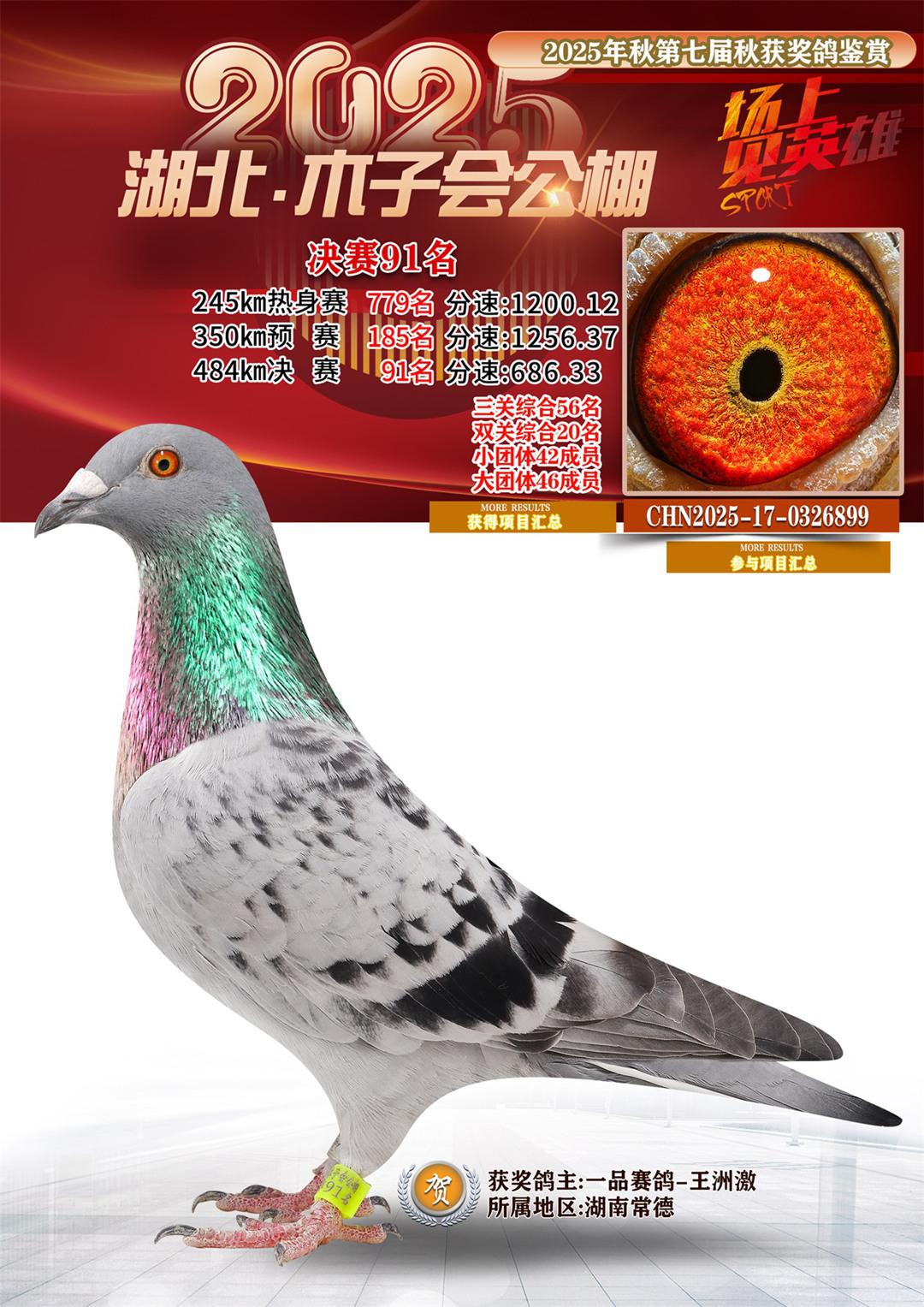 湖北省木子会公棚2025决赛91名一品赛鸽-王洲激17-0326899湖南常德获奖鸽展示!
