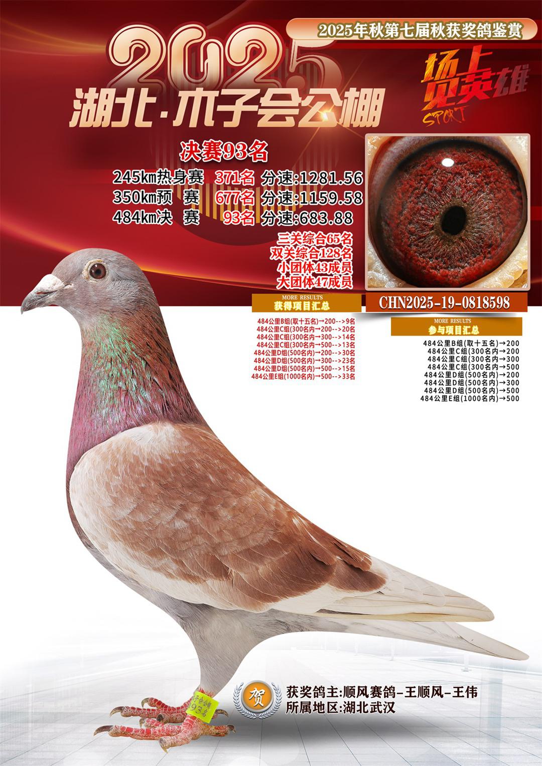 湖北省木子会公棚2025决赛93名顺风赛鸽-王顺风-王伟19-0818598湖北武汉获奖鸽展示!