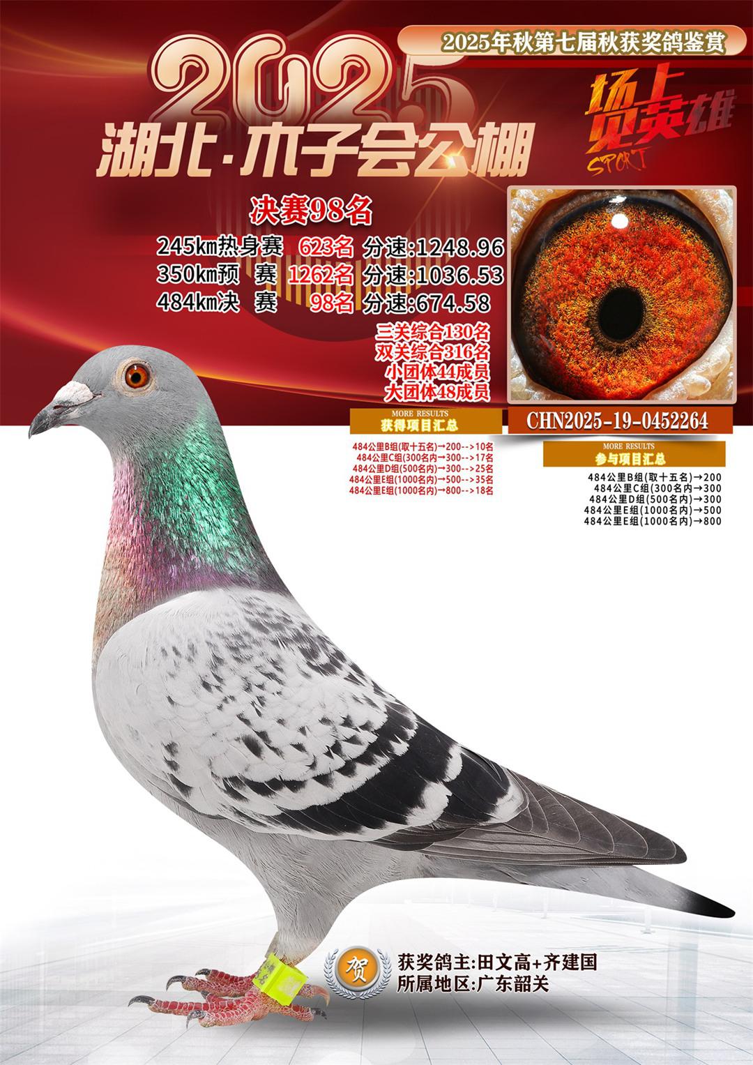 湖北省木子会公棚2025决赛98名田文高+齐建国19-0452264广东韶关获奖鸽展示!