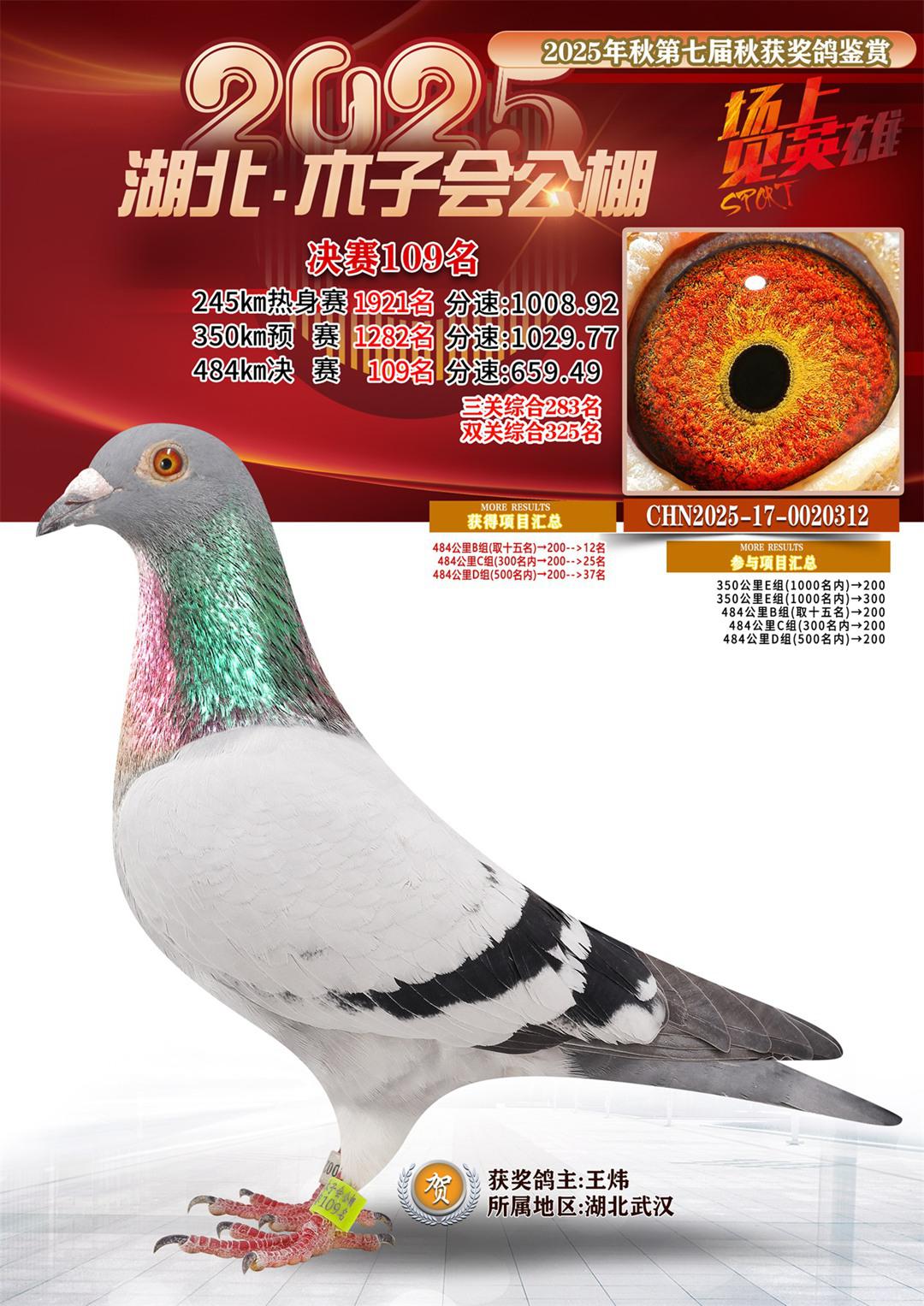 湖北省木子会公棚2025决赛109名王炜17-0020312湖北武汉获奖鸽展示!