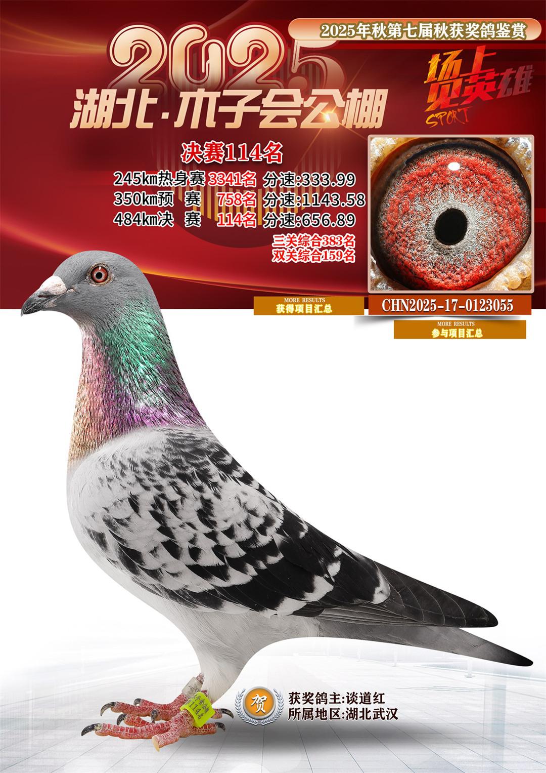 湖北省木子会公棚2025决赛114名谈道红17-0123055湖北武汉获奖鸽展示!