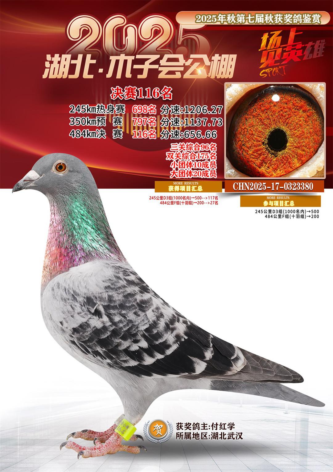 湖北省木子会公棚2025决赛116名付红学17-0323380湖北武汉获奖鸽展示!