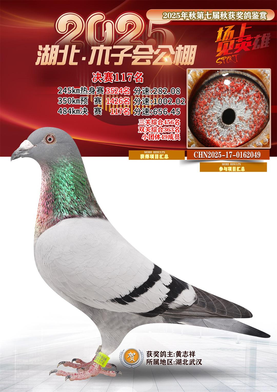 湖北省木子会公棚2025决赛117名黄志祥17-0162049湖北武汉获奖鸽展示!