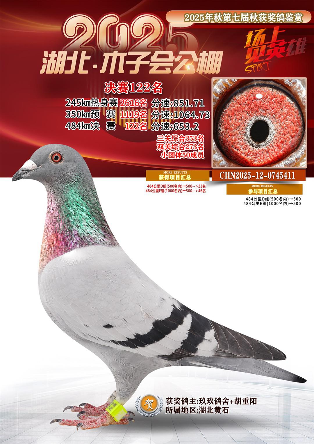 位置:湖北省木子会公棚2025获奖鸽展示\决赛122名