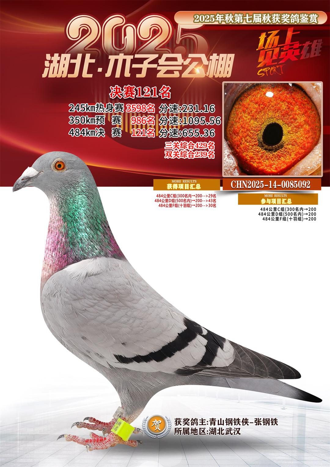 湖北省木子会公棚2025决赛121名青山钢铁侠-张钢铁14-0085092湖北武汉获奖鸽展示!