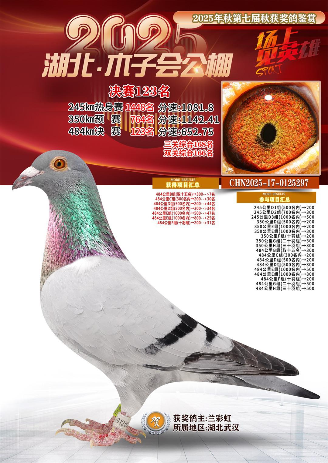 湖北省木子会公棚2025决赛123名兰彩虹17-0125297湖北武汉获奖鸽展示!