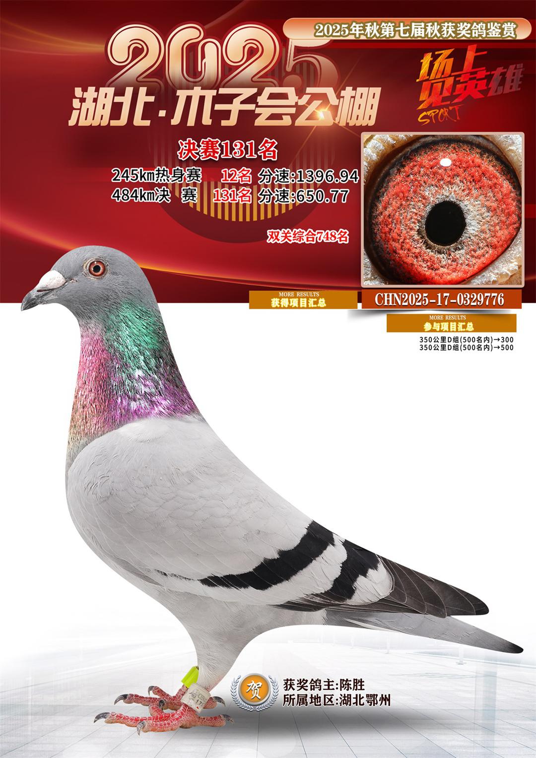 湖北省木子会公棚2025决赛131名陈胜17-0329776湖北鄂州获奖鸽展示!