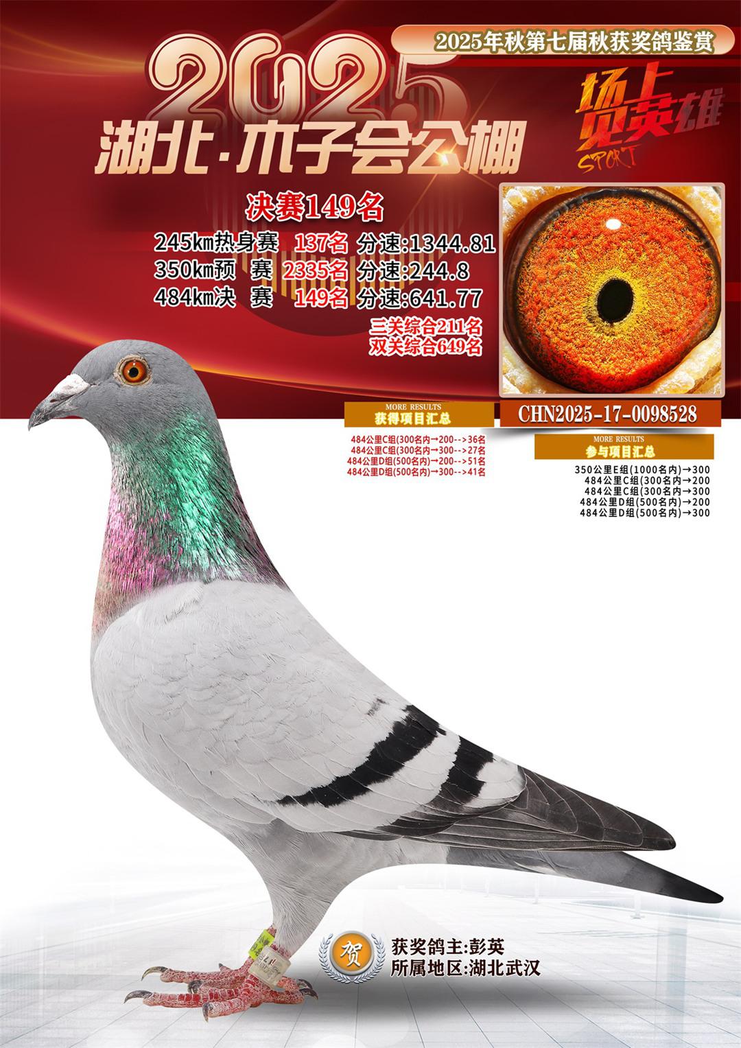 湖北省木子会公棚2025决赛149名彭英17-0098528湖北武汉获奖鸽展示!