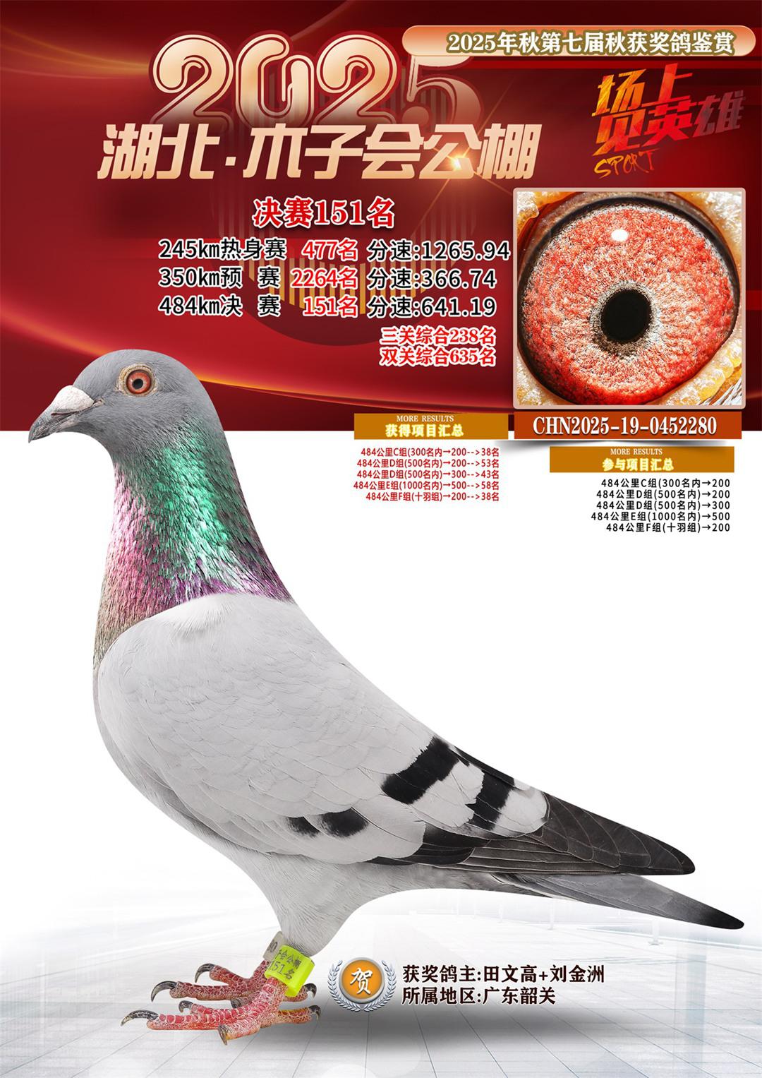 湖北省木子会公棚2025决赛151名田文高+刘金洲19-0452280广东韶关获奖鸽展示!