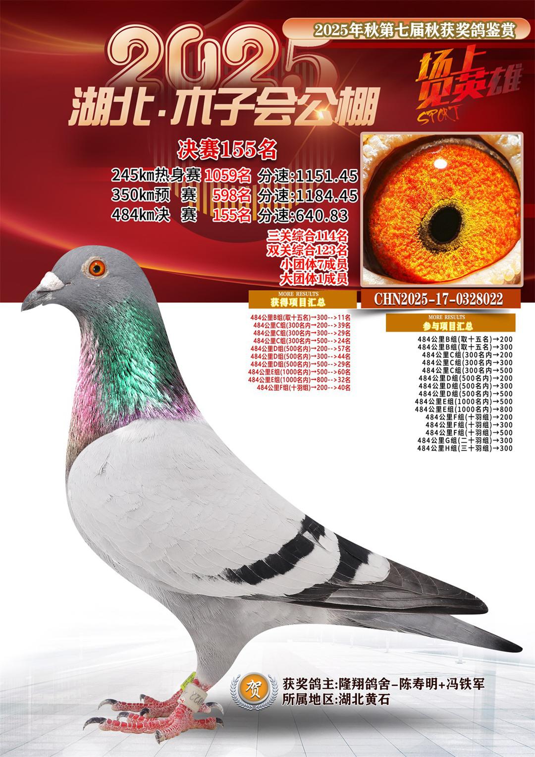 湖北省木子会公棚2025决赛155名隆翔鸽舍-陈寿明+冯铁军17-0328022湖北黄石获奖鸽展示!