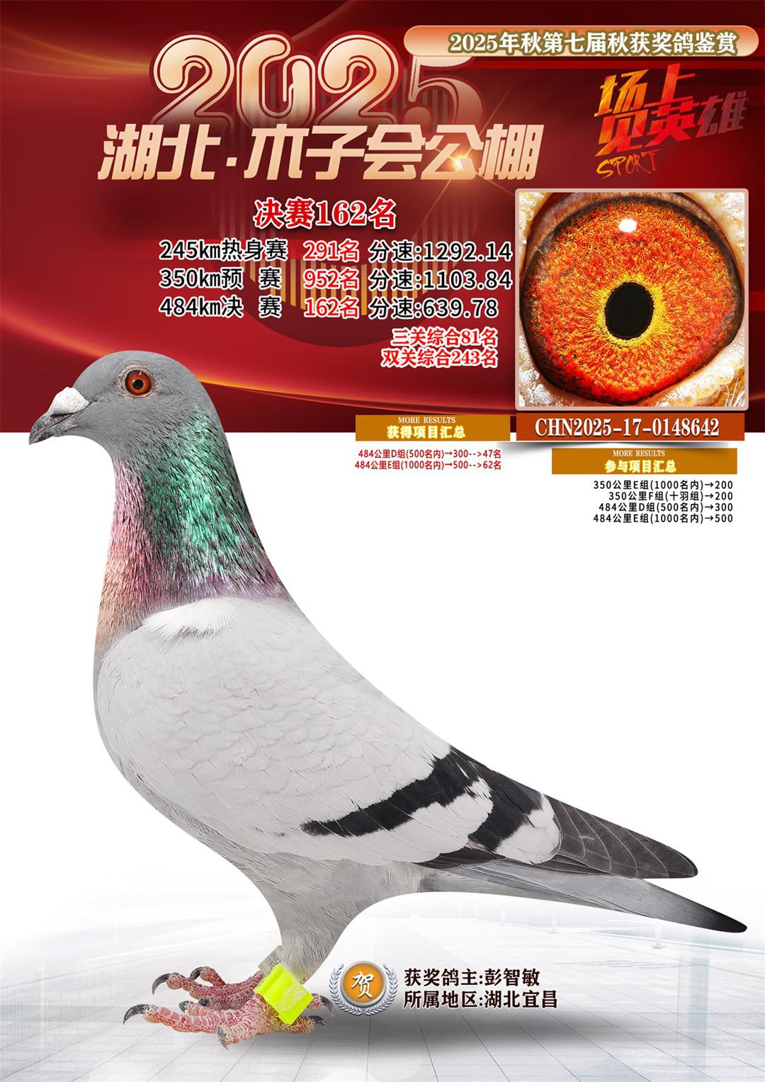 湖北省木子会公棚2025决赛162名彭智敏17-0148642湖北宜昌获奖鸽展示!