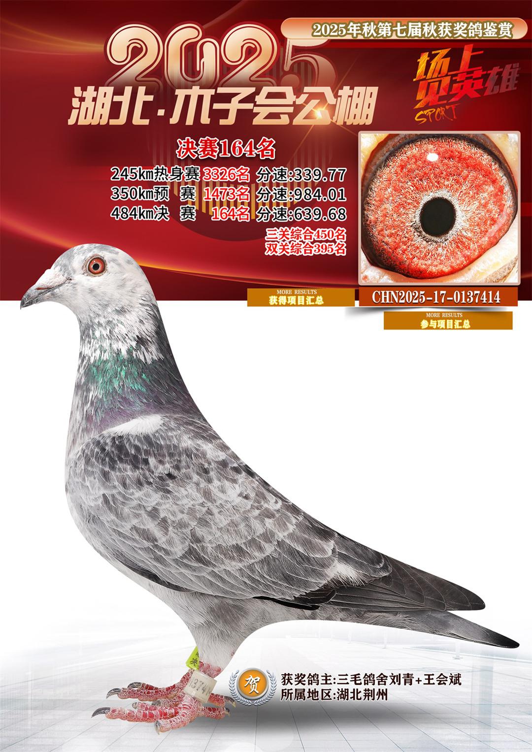 湖北省木子会公棚2025决赛164名三毛鸽舍刘青+王会斌17-0137414湖北荆州获奖鸽展示!