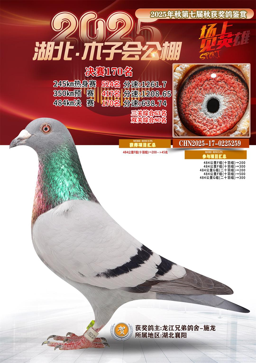 湖北省木子会公棚2025决赛170名龙江兄弟鸽舍-施龙17-0225259湖北襄阳获奖鸽展示!