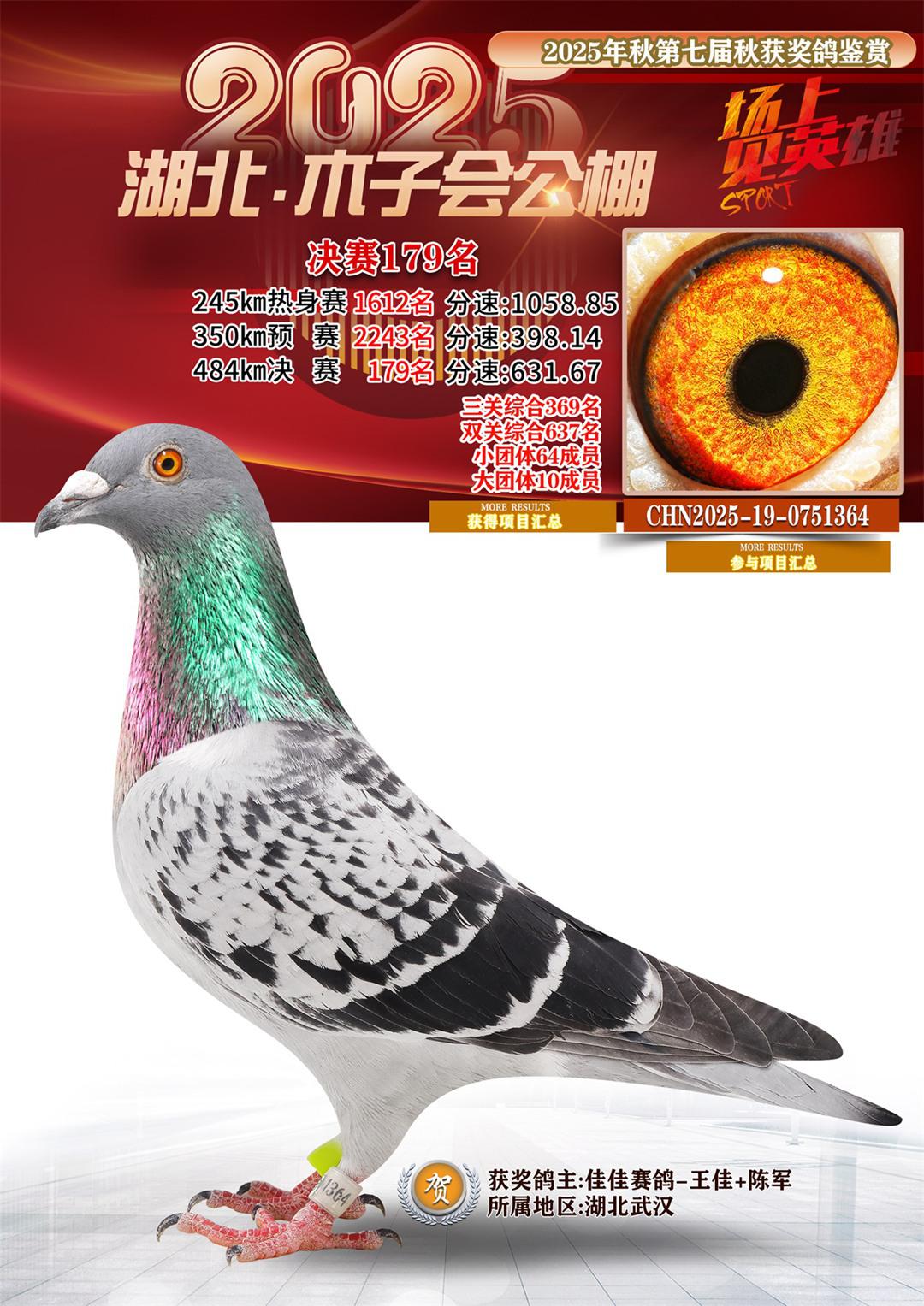 湖北省木子会公棚2025决赛179名佳佳赛鸽-王佳+陈军19-0751364湖北武汉获奖鸽展示!