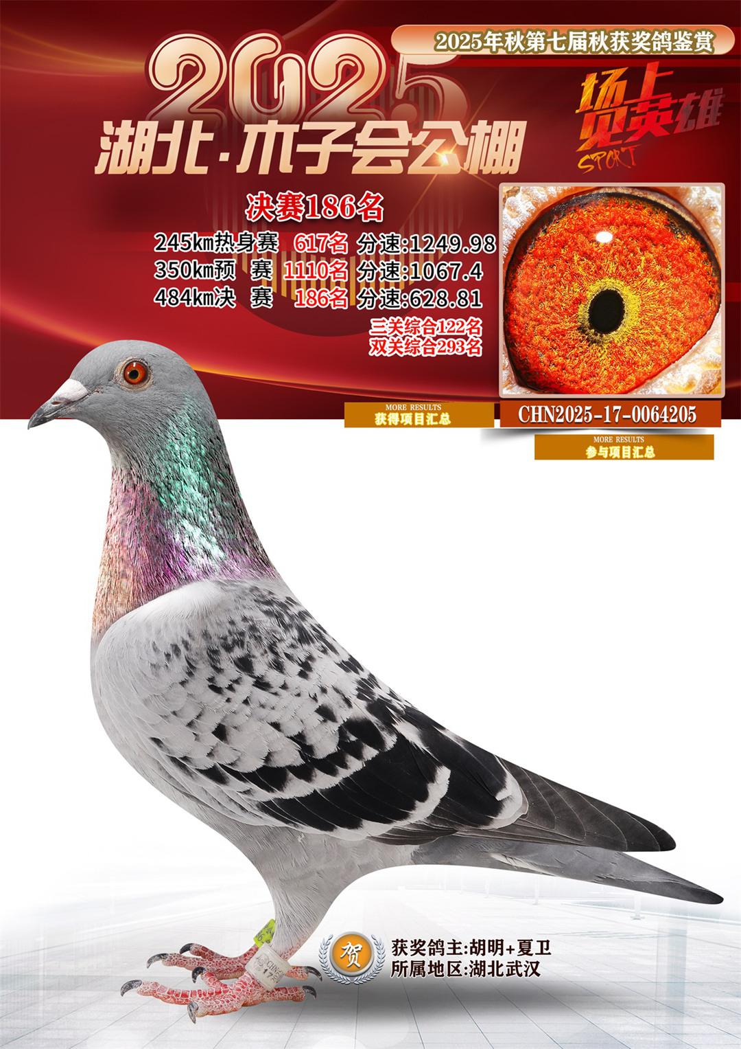 湖北省木子会公棚2025决赛186名胡明+夏卫17-0064205湖北武汉获奖鸽展示!