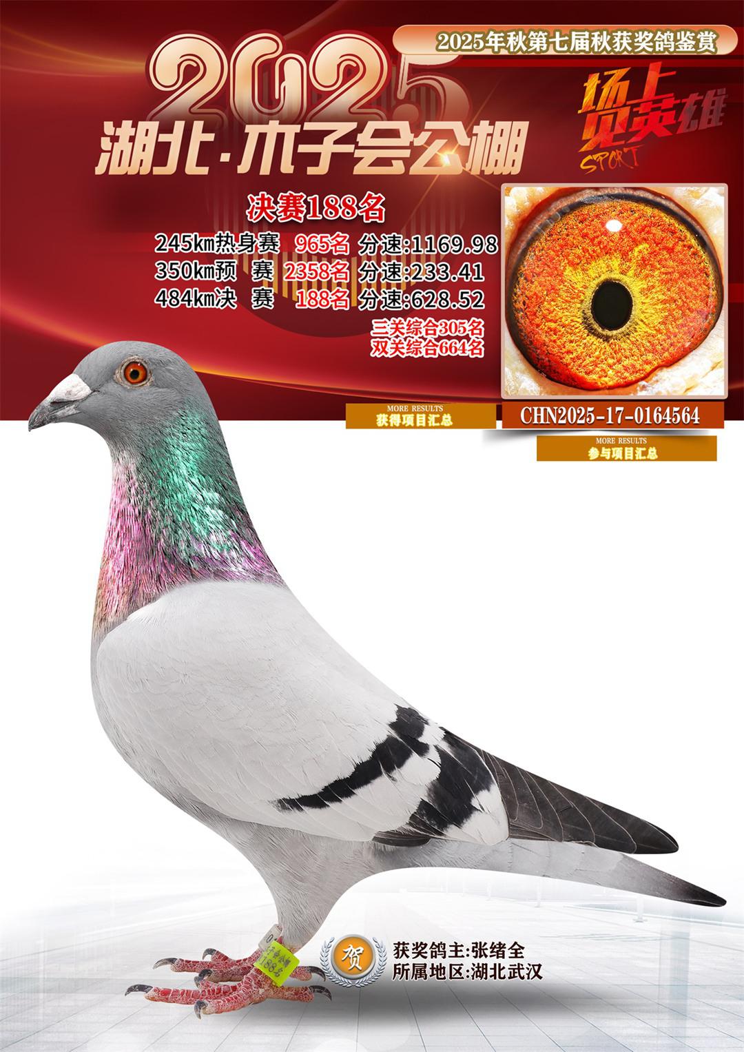 湖北省木子会公棚2025决赛188名张绪全17-0164564湖北武汉获奖鸽展示!