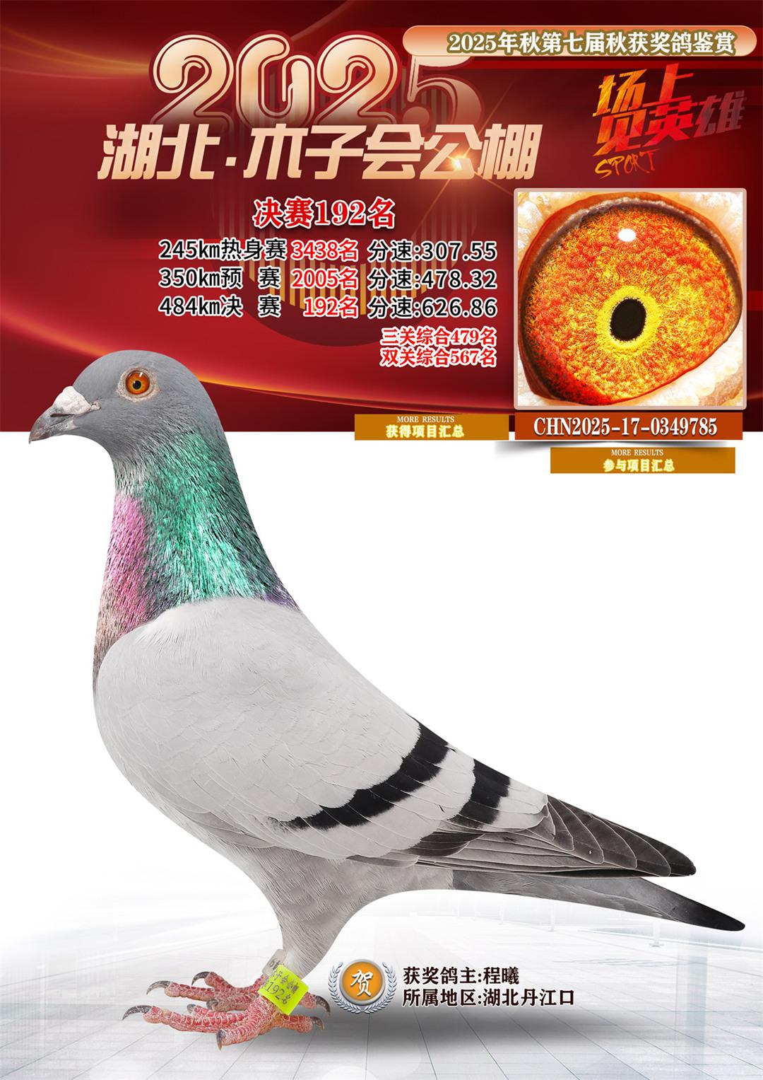 湖北省木子会公棚2025决赛192名程曦17-0349785湖北丹江口获奖鸽展示!