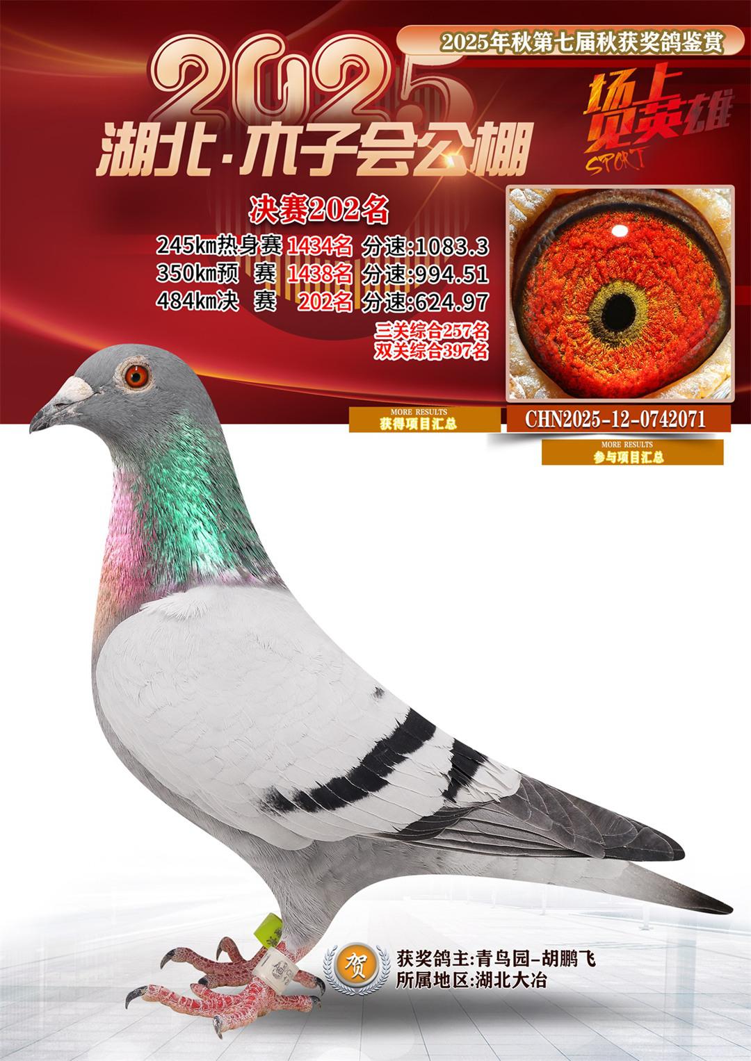 湖北省木子会公棚2025决赛202名青鸟园-胡鹏飞12-0742071湖北大冶获奖鸽展示!