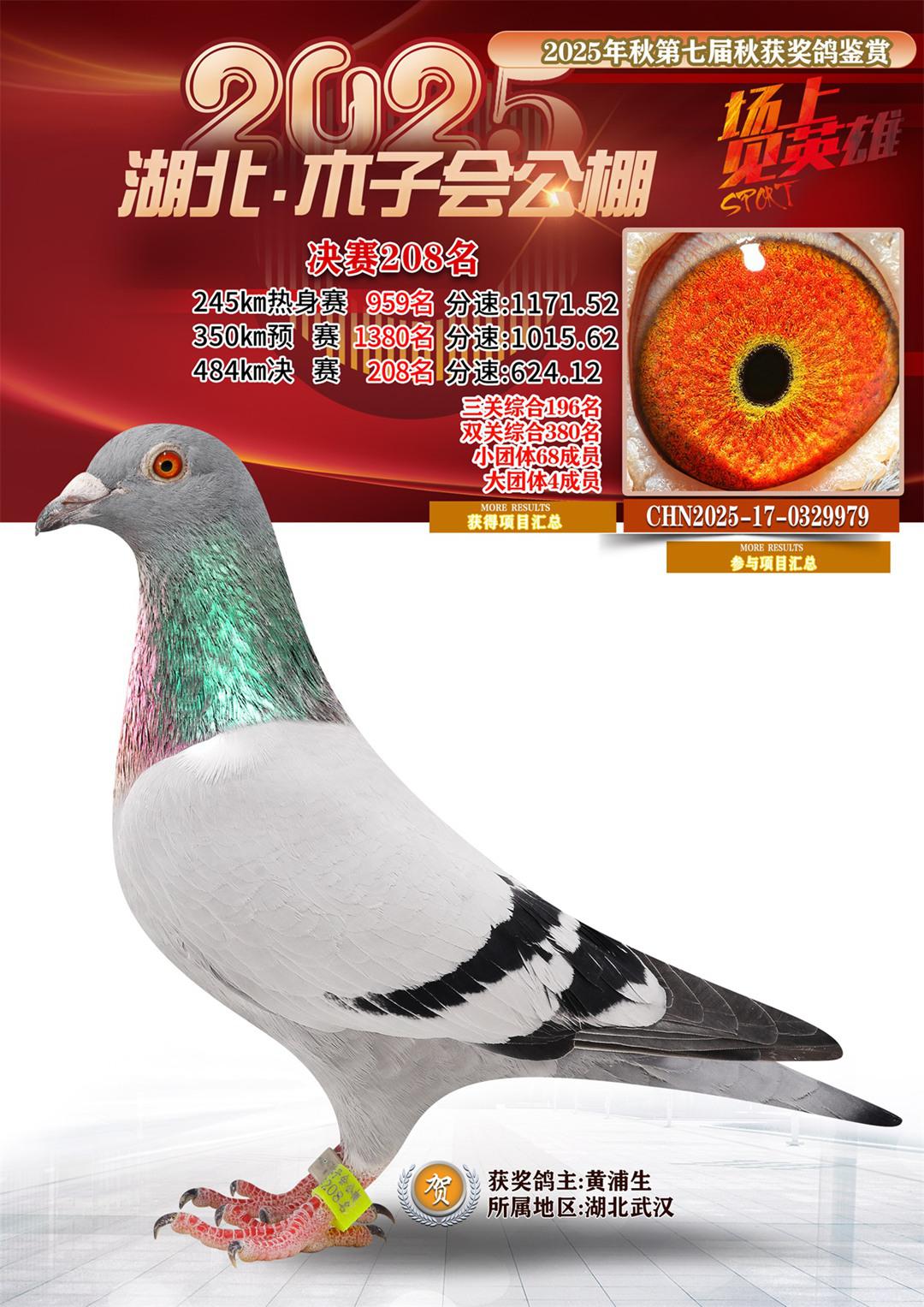 湖北省木子会公棚2025决赛208名黄浦生17-0329979湖北武汉获奖鸽展示!