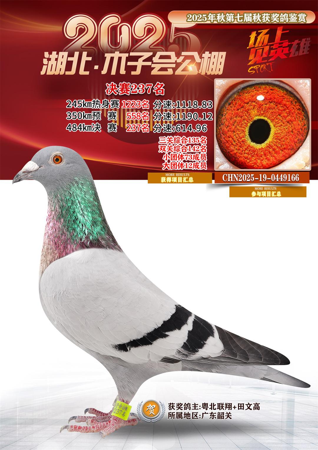 湖北省木子会公棚2025决赛237名粤北联翔+田文高19-0449166广东韶关获奖鸽展示!