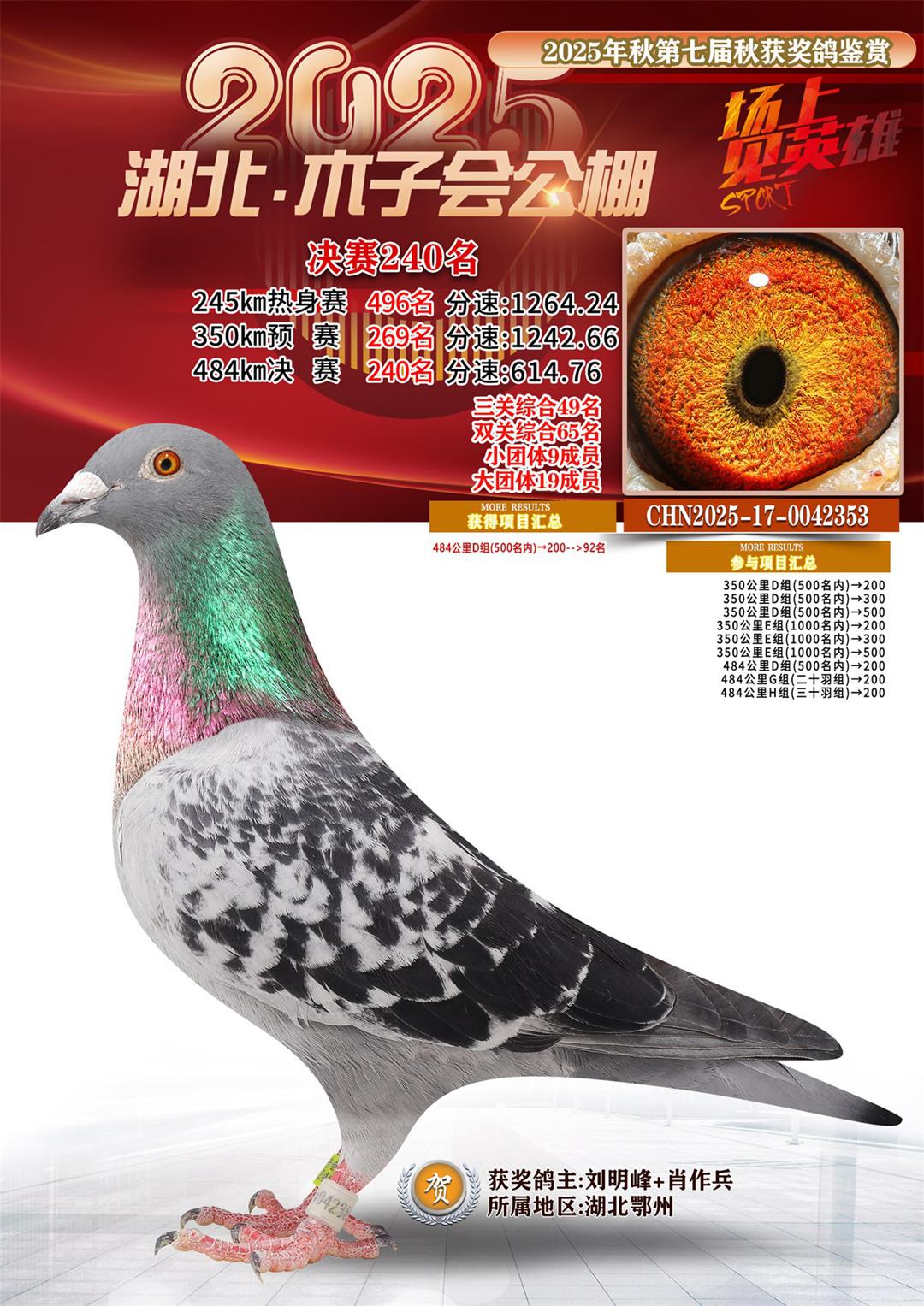 湖北省木子会公棚2025决赛240名刘明峰+肖作兵17-0042353湖北鄂州获奖鸽展示!