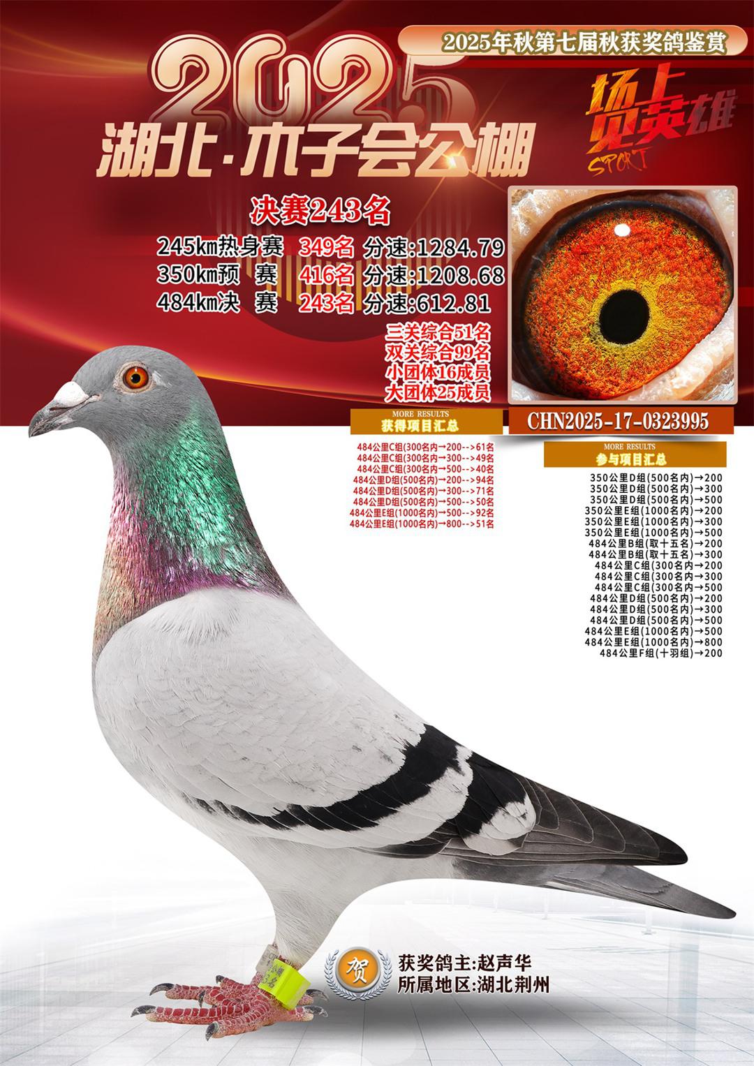 湖北省木子会公棚2025决赛243名赵声华17-0323995湖北荆州获奖鸽展示!