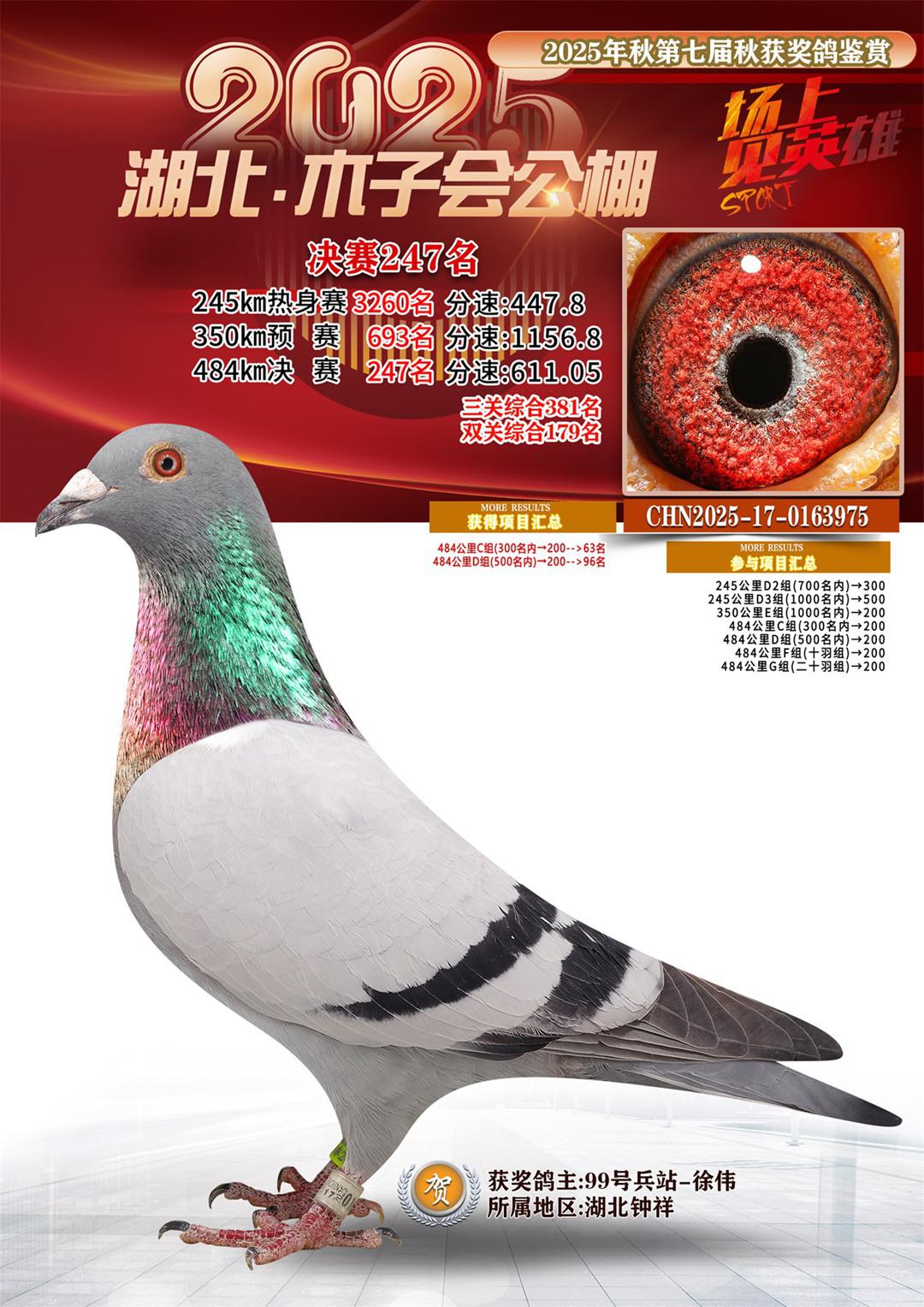湖北省木子会公棚2025决赛247名99号兵站-徐伟17-0163975湖北钟祥获奖鸽展示!