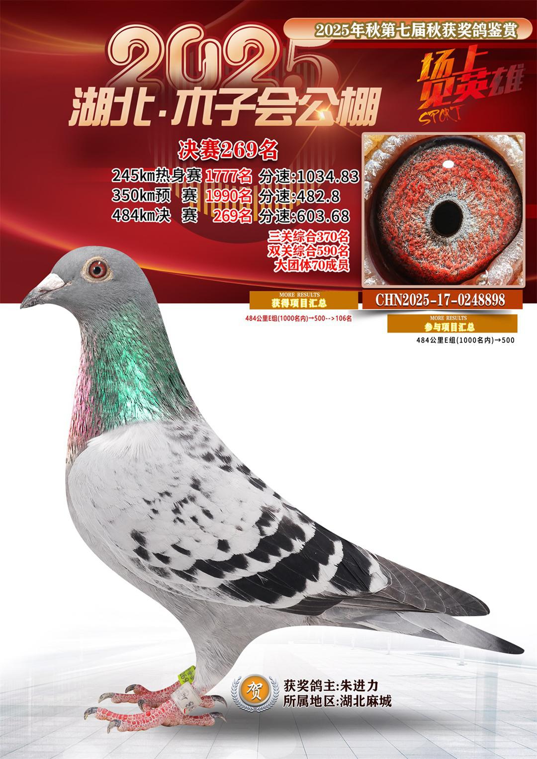 湖北省木子会公棚2025决赛269名朱进力17-0248898湖北麻城获奖鸽展示!