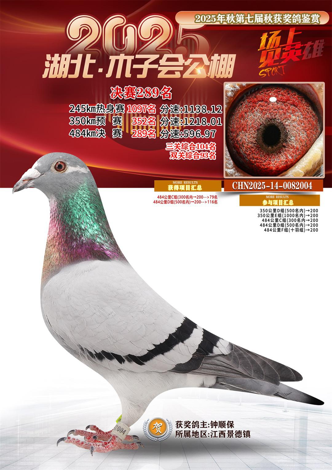 湖北省木子会公棚2025决赛289名钟顺保14-0082004江西景德镇获奖鸽展示!