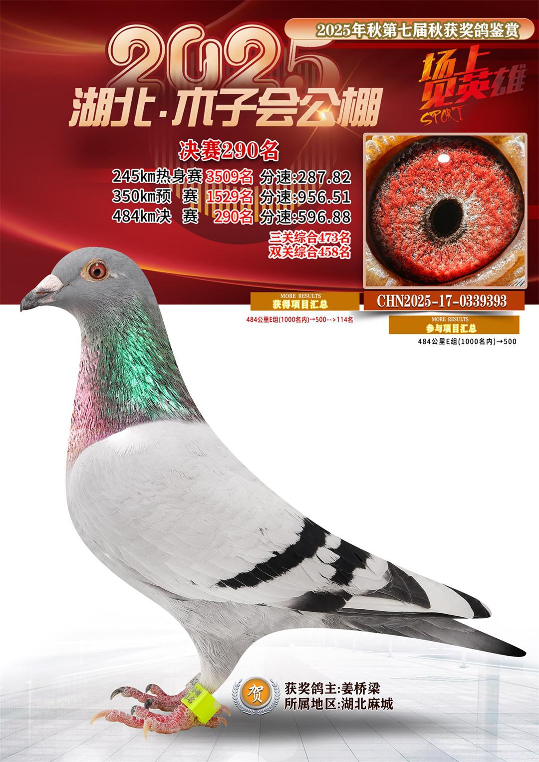 湖北省木子会公棚2025决赛290名姜桥梁17-0339393湖北麻城获奖鸽展示!