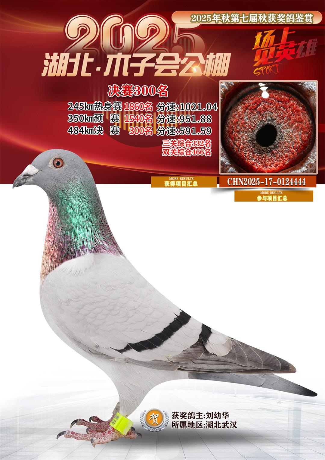湖北省木子会公棚2025决赛300名刘幼华17-0124444湖北武汉获奖鸽展示!