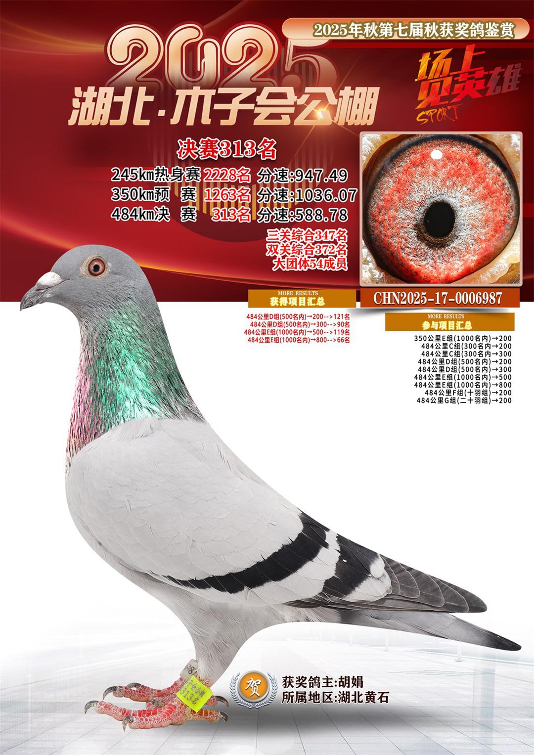 位置:湖北省木子会公棚2025获奖鸽展示\决赛313名