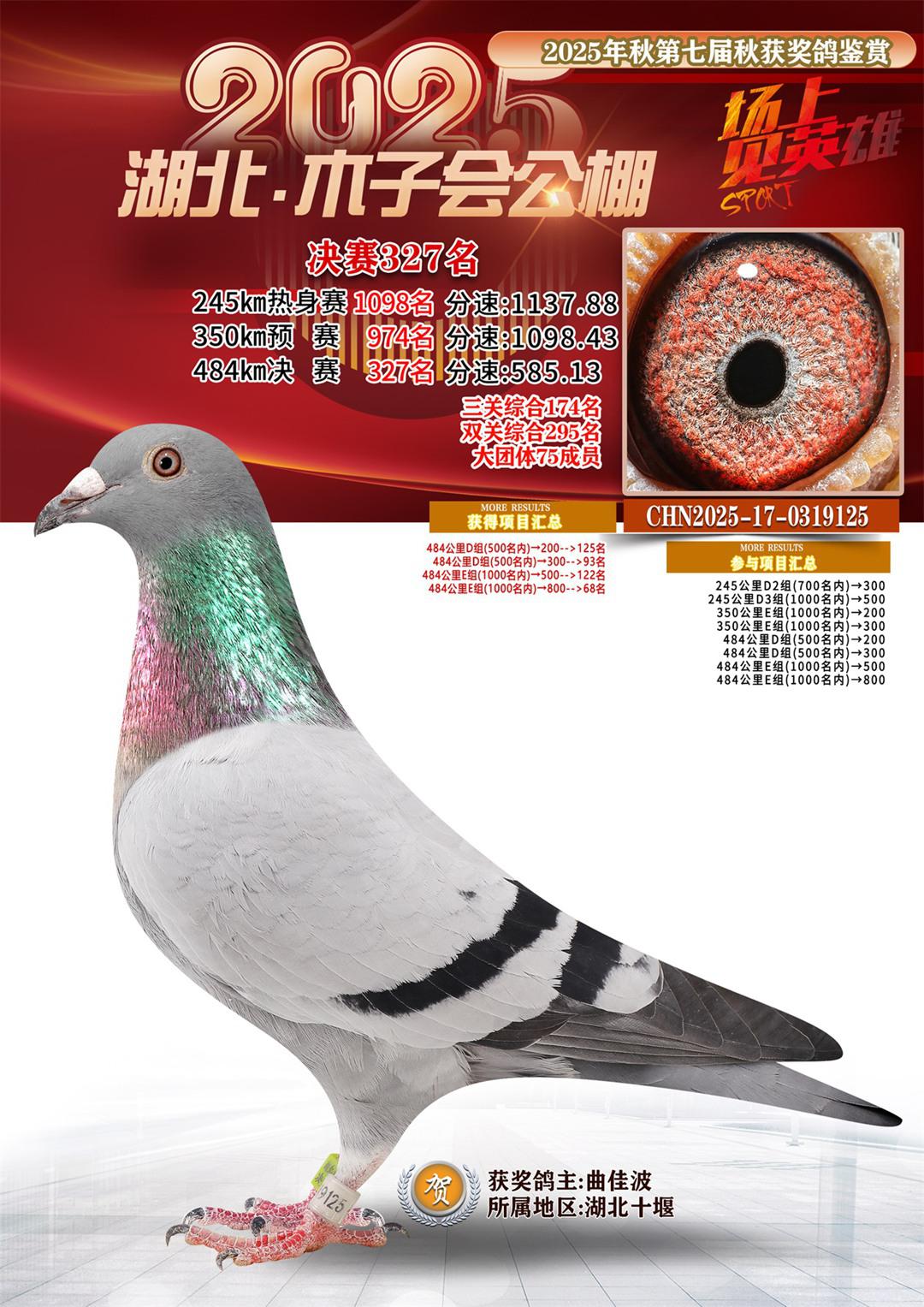 湖北省木子会公棚2025决赛327名曲佳波17-0319125湖北十堰获奖鸽展示!