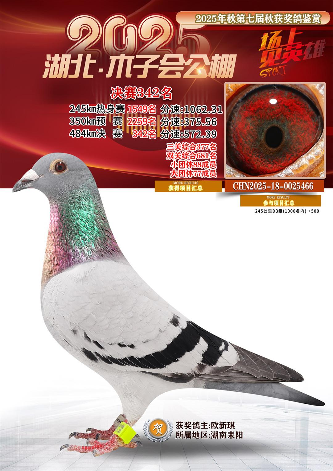 湖北省木子会公棚2025决赛342名欧新琪18-0025466湖南耒阳获奖鸽展示!