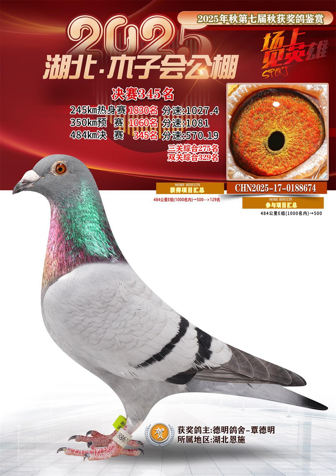 湖北省木子会公棚2025决赛345名德明鸽舍-覃德明17-0188674湖北恩施获奖鸽展示!