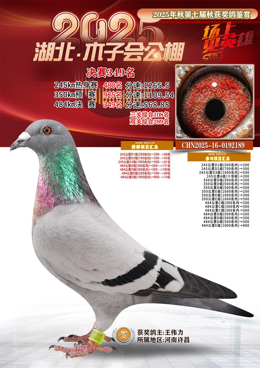 湖北省木子会公棚2025决赛349名王伟力16-0192189河南许昌获奖鸽展示!