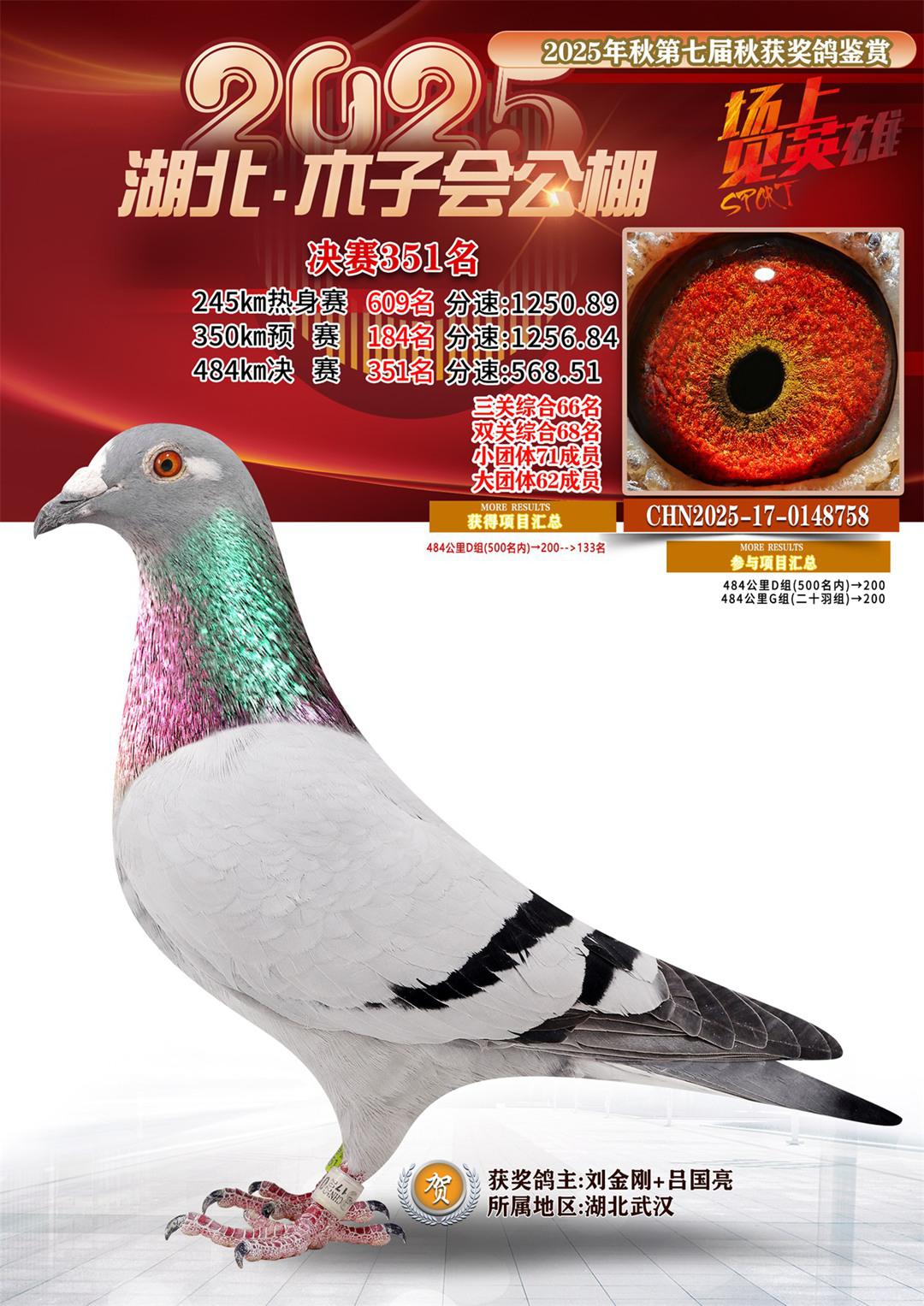 位置:湖北省木子会公棚2025获奖鸽展示\决赛351名