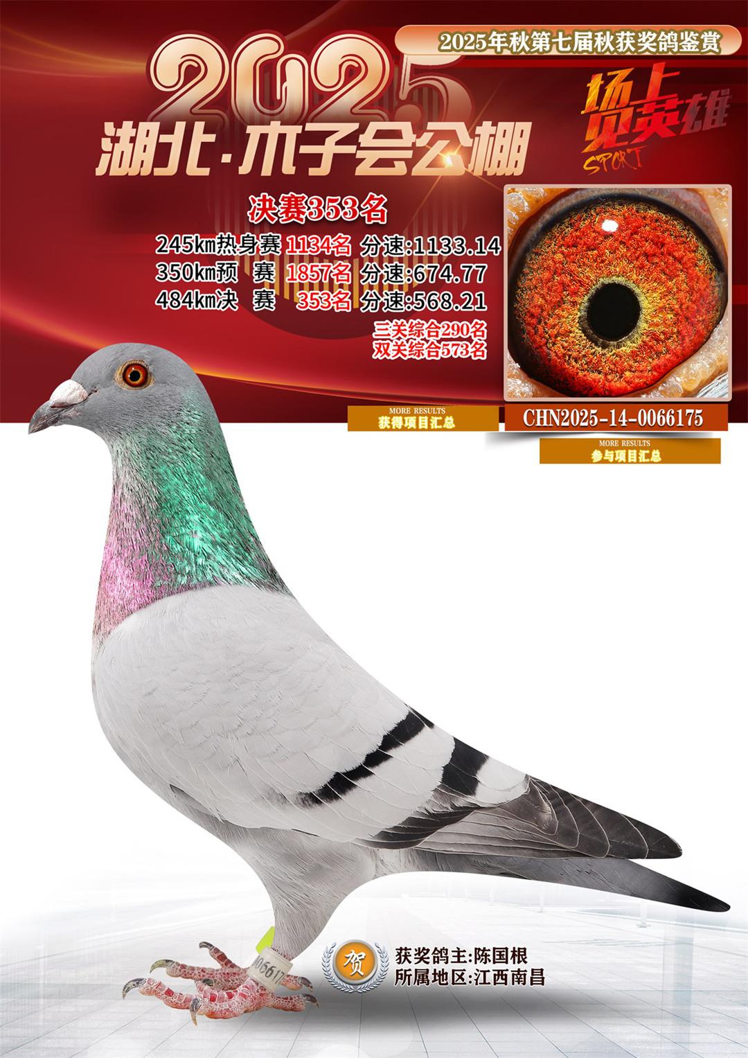 位置:湖北省木子会公棚2025获奖鸽展示\决赛353名
