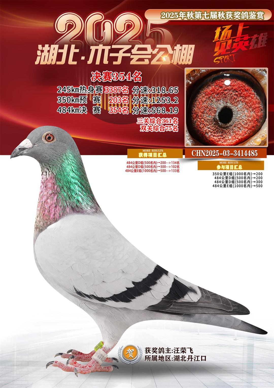 位置:湖北省木子会公棚2025获奖鸽展示\决赛354名