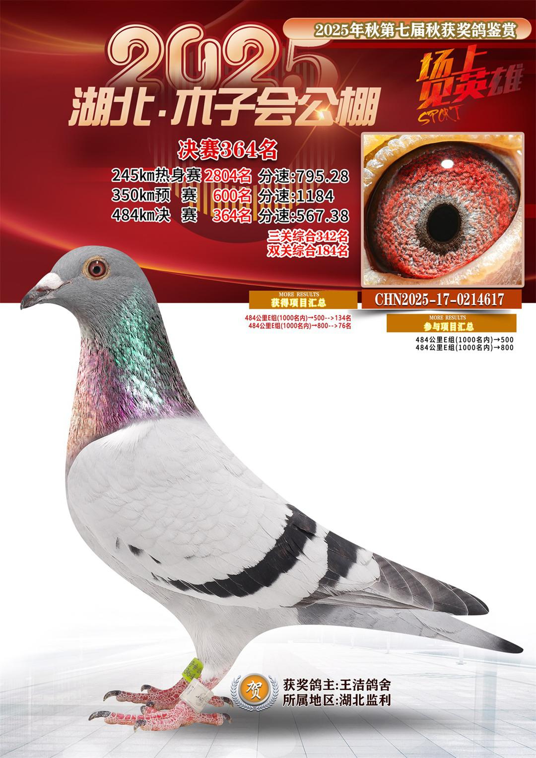 湖北省木子会公棚2025决赛364名王洁鸽舍17-0214617湖北监利获奖鸽展示!