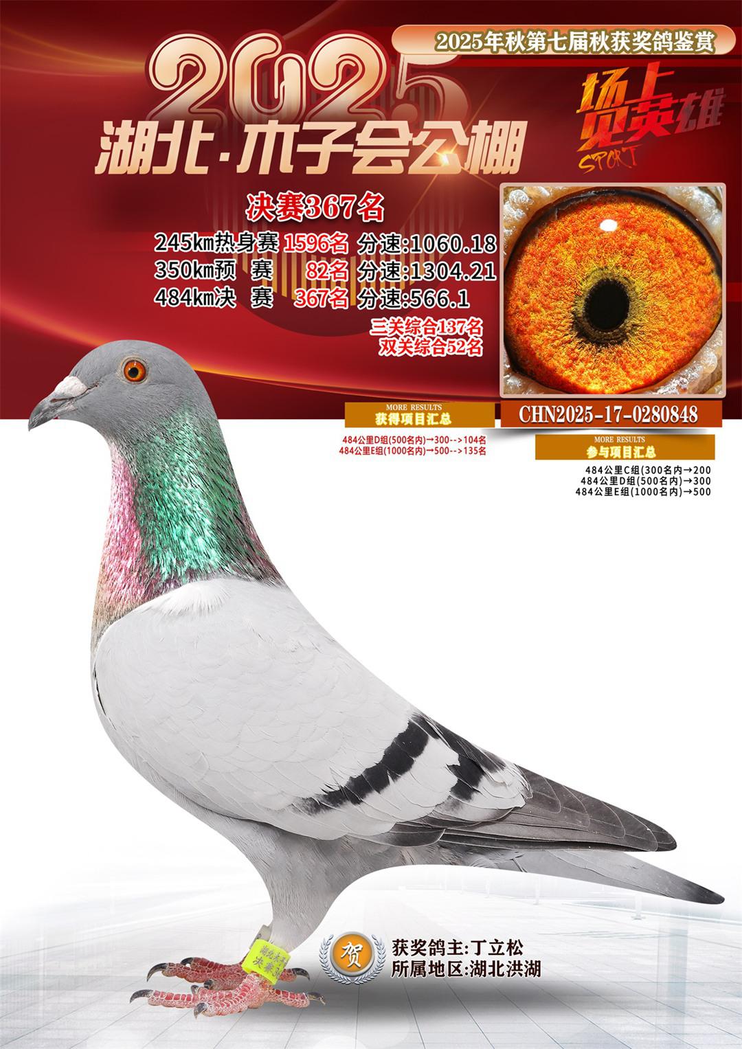 湖北省木子会公棚2025决赛367名丁立松17-0280848湖北洪湖获奖鸽展示!