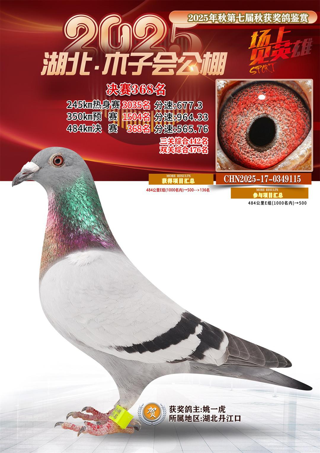 湖北省木子会公棚2025决赛368名姚一虎17-0349115湖北丹江口获奖鸽展示!