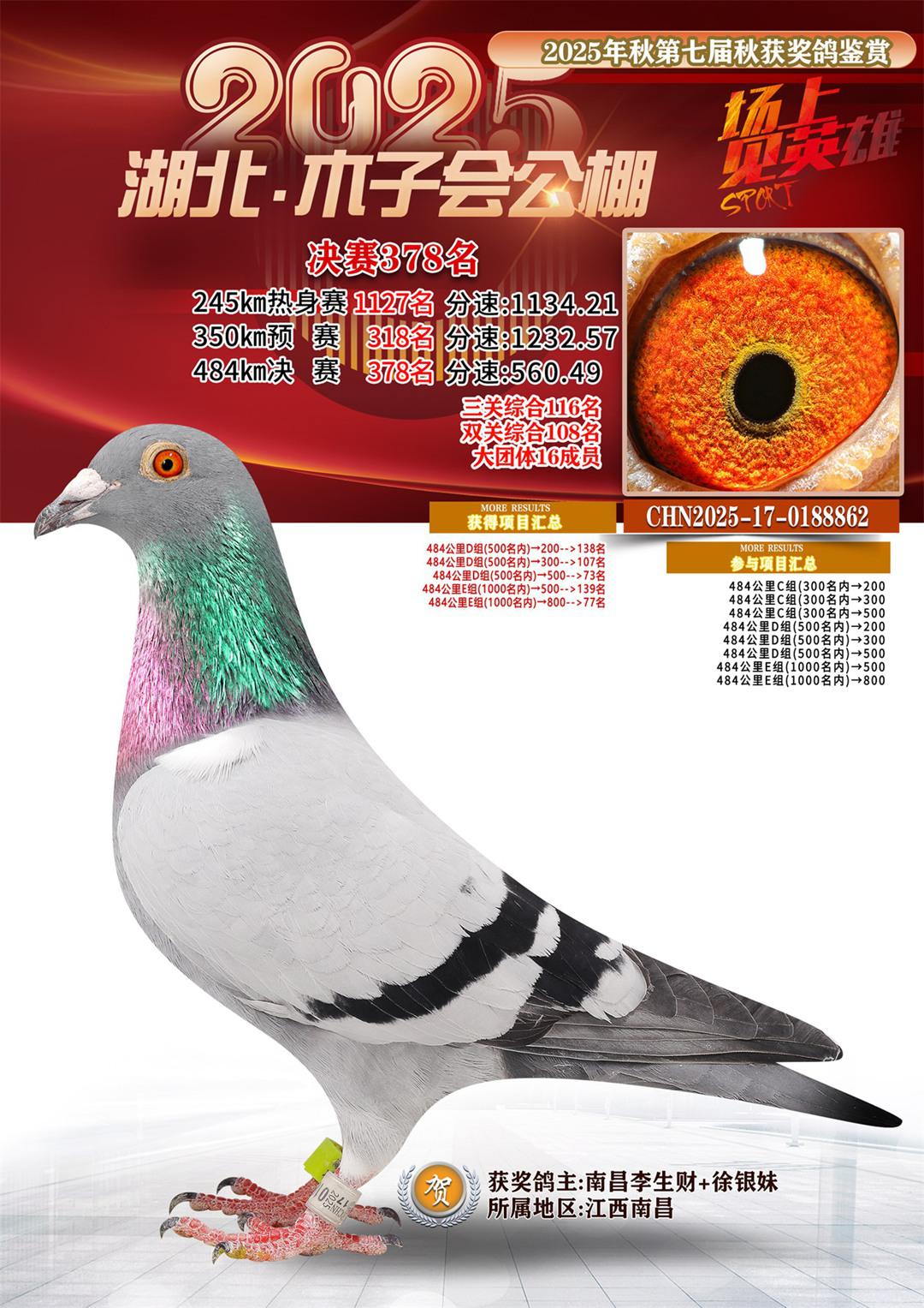 位置:湖北省木子会公棚2025获奖鸽展示\决赛378名