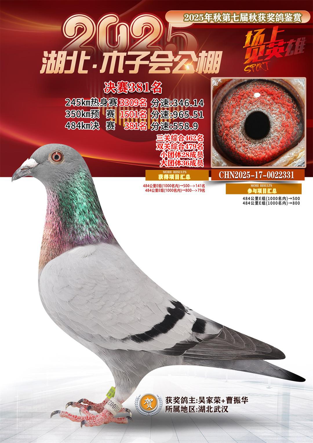 位置:湖北省木子会公棚2025获奖鸽展示\决赛381名