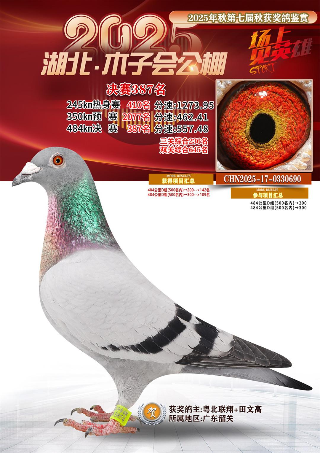 位置:湖北省木子会公棚2025获奖鸽展示\决赛387名