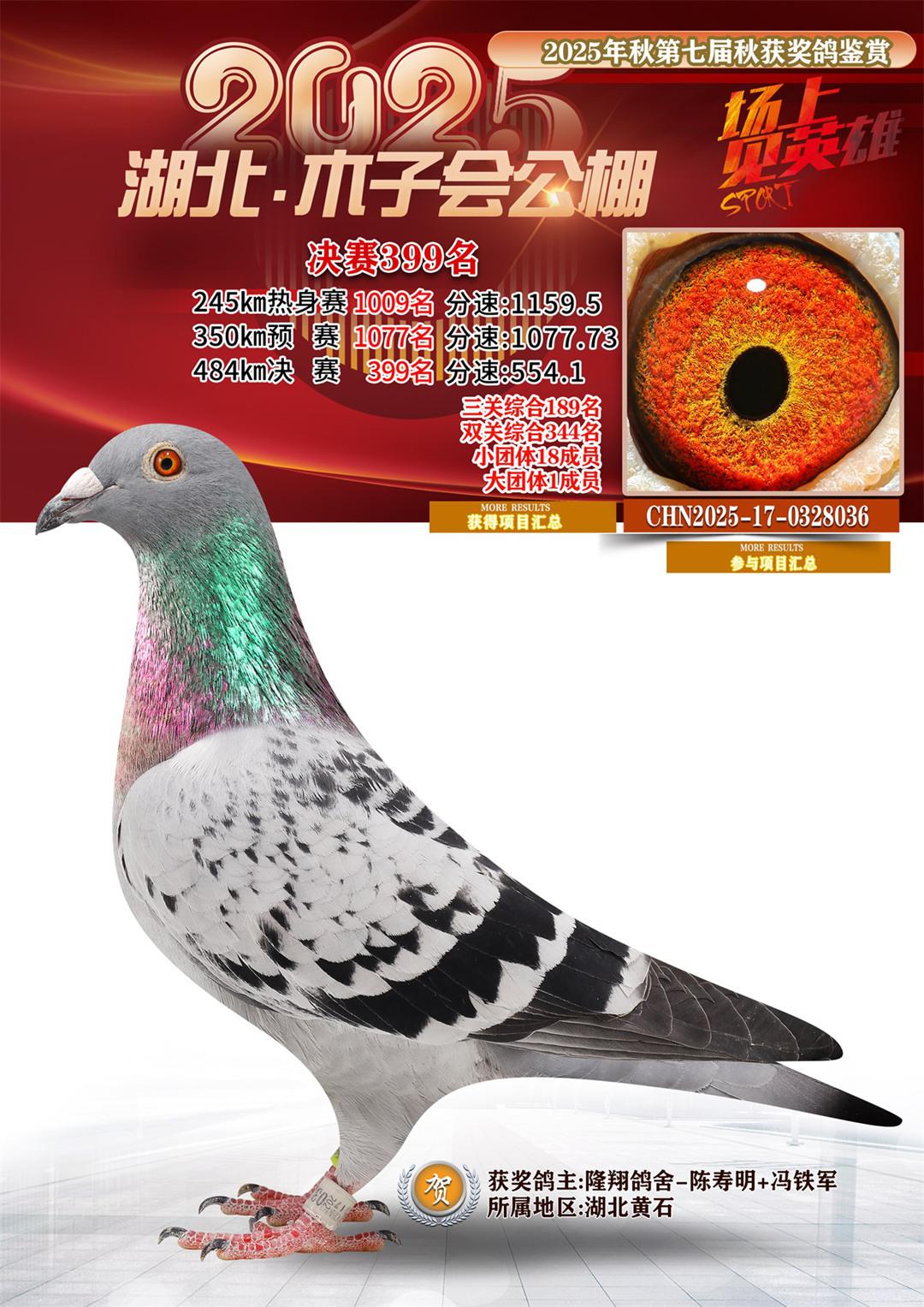 位置:湖北省木子会公棚2025获奖鸽展示\决赛399名